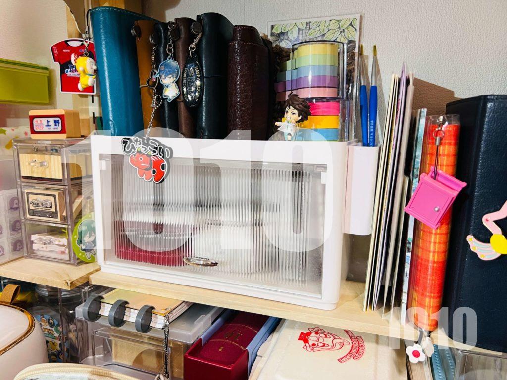 新しい収納ゲットした!可愛い♡(周り乱雑だけど)