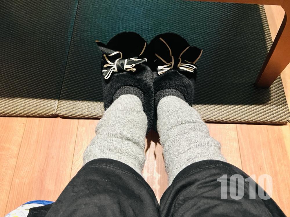 明日こたつかな。今日は首という首が寒くて、ネックウォーマー・レッグウォーマー・毛糸の靴下・ハンドウォーマーという装備でした。スリッパは既にモコモコ仕様。